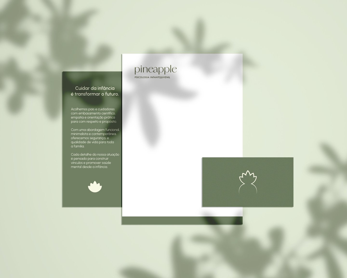 A clínica oferece aos pais o embasamento científico necessário para educar de forma funcional, respeitosa e assertiva, promovendo saúde mental e qualidade de vida. Com uma estética minimalista e contemporânea, a identidade visual utiliza tons de verde suaves e terrosos que evocam, segurança e crescimento. A tipografia é moderna e delicada, possui um alto grau de sofisticação, com frases curtas e diretas, que reforçam uma comunicação acessível e empática, fortalecendo o vínculo com as famílias.